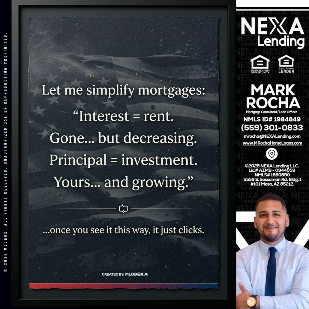 LET ME SIMPLIFY - Mark Anthony Rocha -Loan OfficerHi, my name is Mark Anthony Rocha. I’m a Loan Officer with NEXA Lending LLC., offering personalized mortgage solutions, fast customized quotes, great rates and service with integrity.