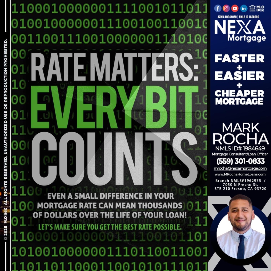 Hi, my name is Mark Anthony Rocha. I’m a Loan Officer with NEXA Mortgage LLC., offering personalized mortgage solutions, fast customized quotes, great rates and service with integrity.